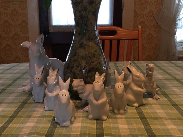 It started with two larger ceramic rabbits. I bought a third one yesterday. Because it was there as I walked in the store.
