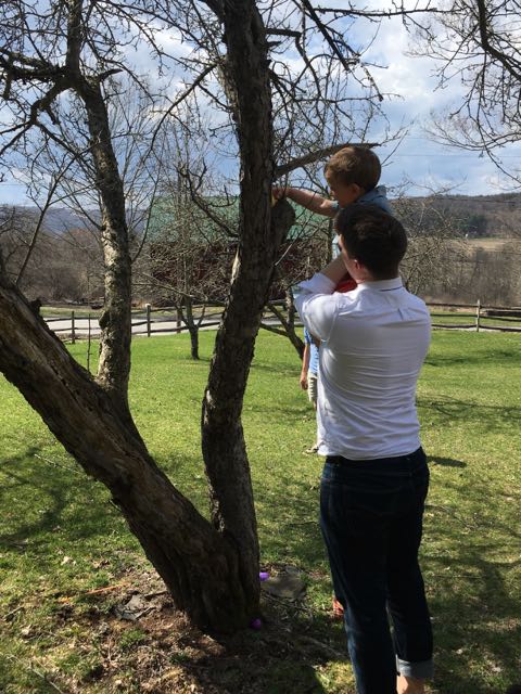 Some were placed high in the trees. Henry isn’t up to climbing yet, so his uncle “Fred” helped him reach them.