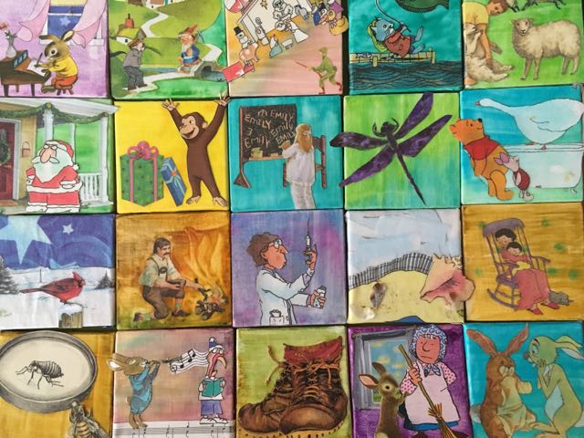 Row 1 (left to right): Mary — a little Richard Scarry bunny writing at a desk. Bud had just painted her walls of her bedroom lavender, the very color I had wanted the walls of my bedroom when I was a child (but it didn’t happen).