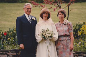 My mother let me have her wedding dress, although I was nowhere near as tiny-waisted as she had been. The seamstress who made my dress used lace from my mother’s to make the yoke on my bodice and the cap for my veil.