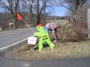 When my mother was weeding the gardens between the fence and the road, she would shake her fist at cars that drove by too fast.