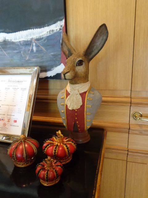 We loved everything about our hotel in Bayeux, the Villa Lara. This rabbit guarded the stairway door.