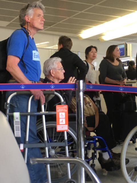 British Airways took very good care of us. At the urging of a friend, I upgraded both my father and my brother to each have a “Biz Bed”. Because we were traveling with someone who needed assistance (my father was in a wheelchair), we also got special treatment. I’m not exactly sure what all the little dots meant, but they were good. My brother and father got to eat in the British Airways lounge before the flight, while Bud and I had a quiet dinner in a little airport restaurant.