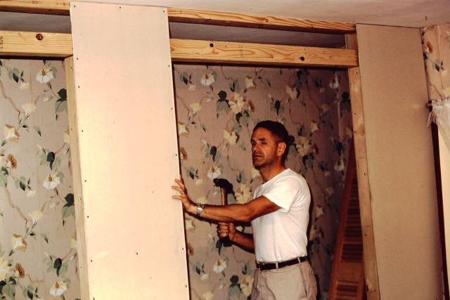 Bi-fold doors must have been in then, because that’s what he installed — in his closet, my mother’s closet, my sister’s closet, and my oldest brother’s closet. The rest of us didn’t get closets; we had cardboard wardrobes.