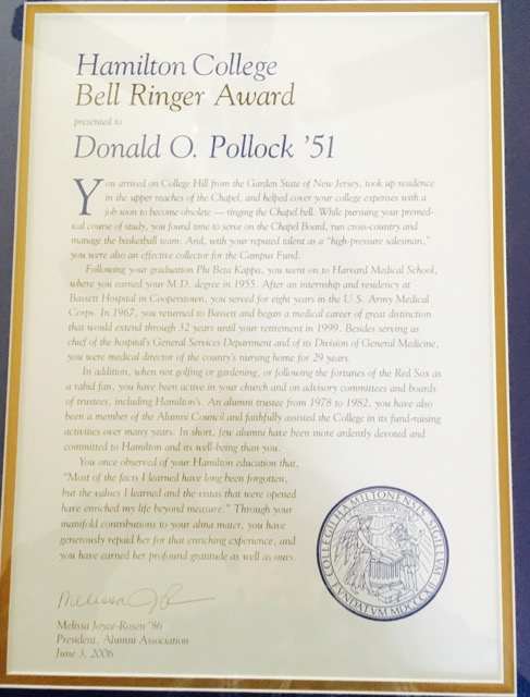 Ben Madonia, Director of Planned Giving at Hamilton, came to visit my father last summer. Ben wrote a follow-up letter to my father, reminding him of the various Hamilton College-related stories they had shared. I thought it was a brilliant idea to recap the visit to help my father remember. Of course, I can’t find that letter to include an excerpt, but Ben also wrote one for my father’s birthday celebration.