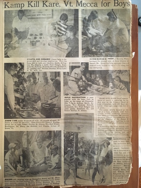 Here’s a newspaper page about Kamp Kill Kare that my father saved in his scrapbook.