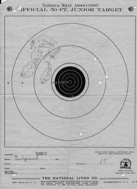 But some of my favorites pieces from the scrapbook are these. A scored rifle target —