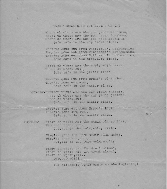 However, many of his mechanically copied papers, even from the 1940s, fall into that fwd-fwd-fwd realm like this one, from “Moving Up Day” in high school: