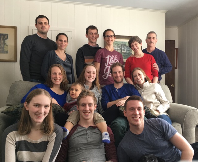 15We have eight children (Philip, Owen, Sam, Helen, Jacob, Karl, Mary, and Laurel), three daughters-in-law (Amanda, Emily, and Donna), and two grandchildren (Henry and Everett). Getting everyone together is rare and so very sweet.