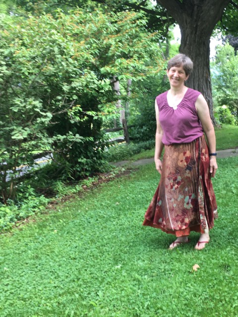 It’s also true that I put on a skirt to stay cool. I learned on Sunday how comfortable these skirts can be on a hot hot day in July. I wore the skirt to church and stayed in it all day.