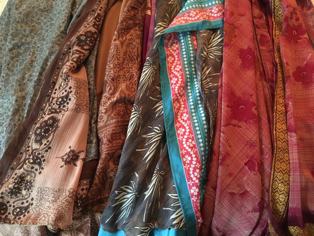 But they also sell these wrap-around skirts made from recycled saris. No two skirts are alike.