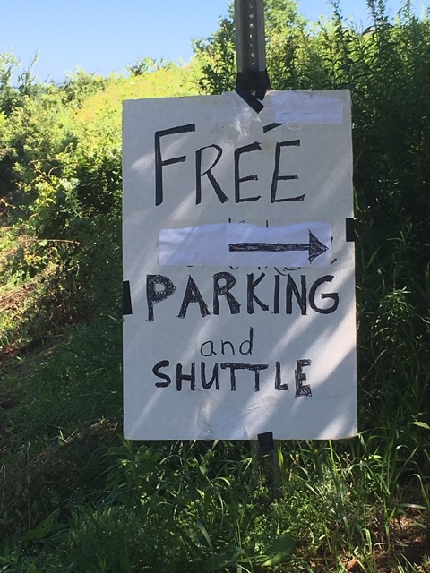 My brother mowed a patch in the field in front of his house and attached the “Free Parking” sign to his mailbox.