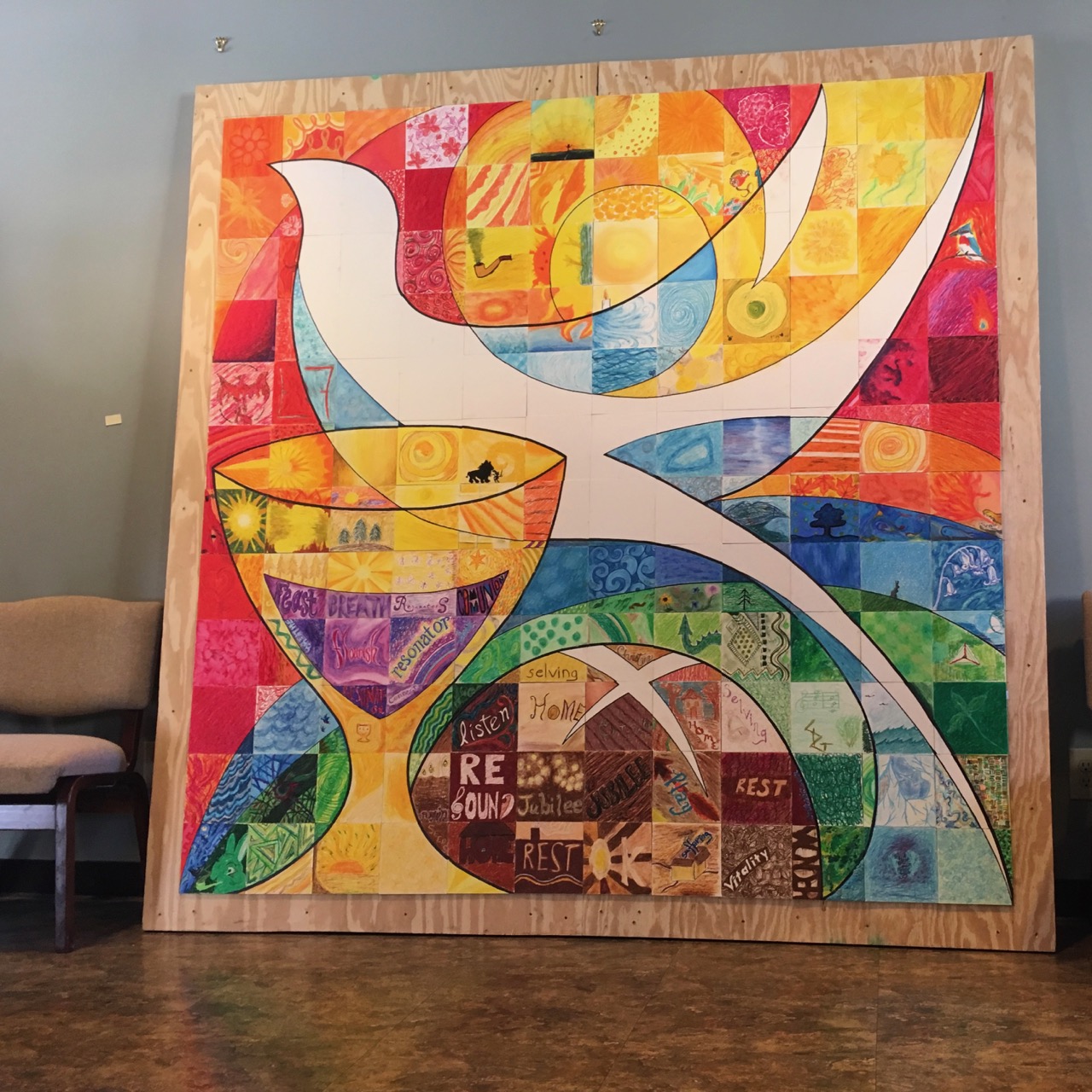 Art work created in community at a conference called Hutchmoot (2016). There, people from many different Christian faith traditions worship in love. It’s a beautiful thing.