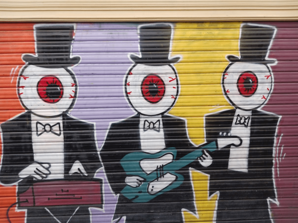 When she emerged, she spotted the Eyeball Band painted on the garage door. She ran straight to it and found the secret door.