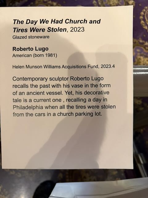 I suppose tire theft isn’t funny, but I laughed. The artist, and the museum in the way it displayed his artwork, were very clever.