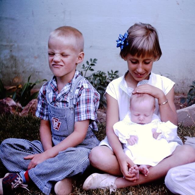 My sister with her two younger brothers (1964). Juxtaposition of facial expressions?