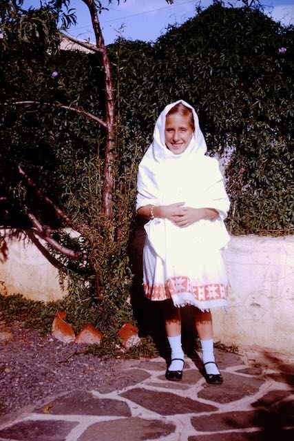 This is Gazachen, our housemaid, dressed in the shawl and white gauzy dress, and me, not to be trusted in a white dress.