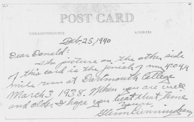 Glenn Cunningham Finish of 4:04.4 mile“…When you are well and older I hope you beat that time.”