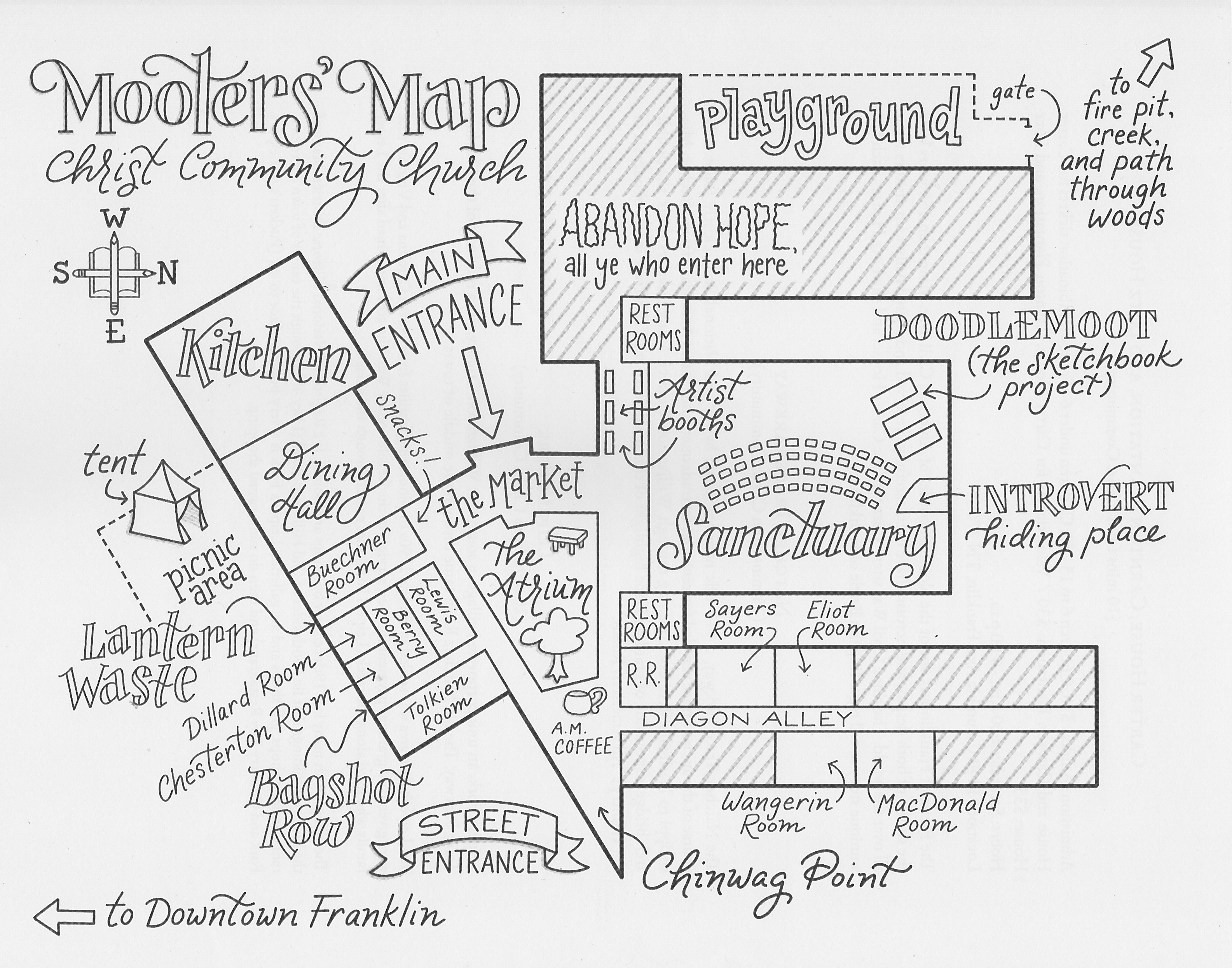 In 2017, when Hutchmoot was moved to Christ Community Church in Franklin and more than doubled in size, I was quite leery. The first day of Hutchmoot 2017, I sat in my car in the parking lot looking at the door I needed to go through. Signs clearly pointed the way in, but the long sidewalk looked intimidatingly like a gauntlet.