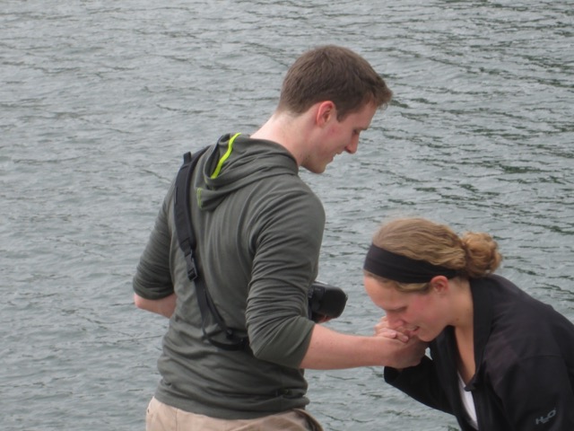 A helping hand while climbing the rocks at Whytecliff Park
