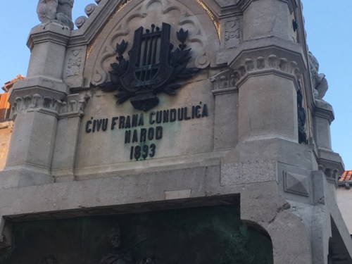 GT translates ĆIVU FRANA CUNDULIĆA NAROD means THE LIVING OF FRANCA CUNDULIĆA NAROD so maybe it’s a person’s name.