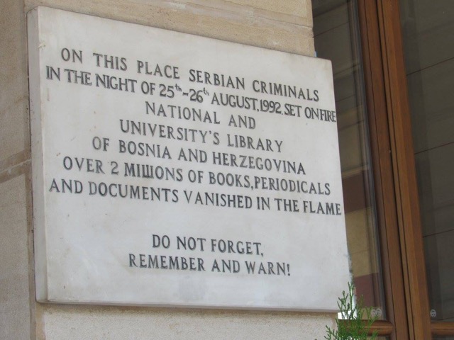 We stood outside the library and I felt sick in my heart as I tried to understand what part of a war involved burning all the books and historic documents that had been housed there.