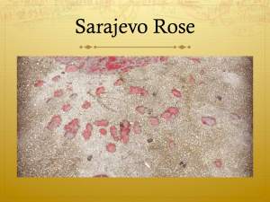 Sarajevo Roses dotted the streets. These commemorated places of fatal mortar strikes — red resin filling the scars left and plaques on nearby buildings with the names of those who died.