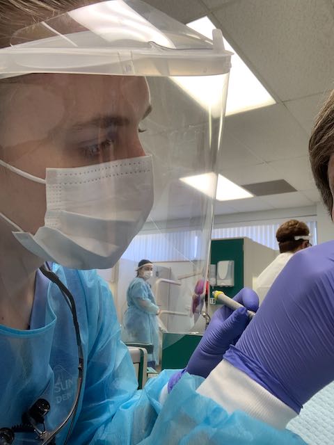 I was my daughter’s first patient for a cleaning.