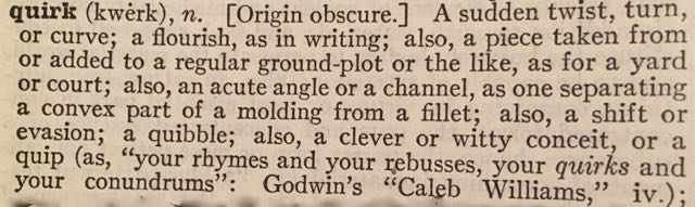A quirk is a sudden twist. I was surprised to read that in the dictionary, because I think of quirks as “unique-nesses” — those things that make you you.
