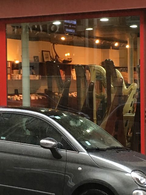 But the next morning, when I stepped out the door, I saw the harp store, wedged into a tiny space precisely where I couldn’t miss it.
