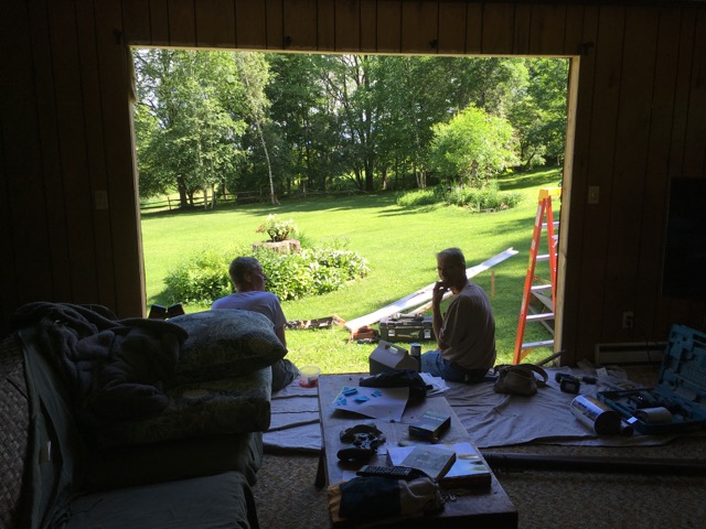 When we hoed the room out at Christmas — when the feng shui (Frank Schwa) was all wrong — we discovered that the slider no longer closed properly and was, in fact, warped. The bleak midwinter is not the proper time to change out a slider. It’s the time to keep the door shut and locked. And the 40 year draperies mostly drawn shut — because, if we’re going to be closed up and closed in, we might as well go for broke.