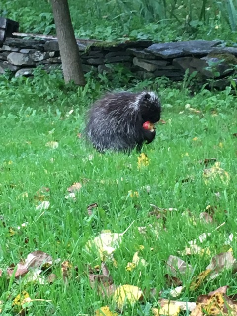 In the evening, Bud and I walked around the apple trees in the pasture looking for him. I called animal control and told him the porcupine was gone.
